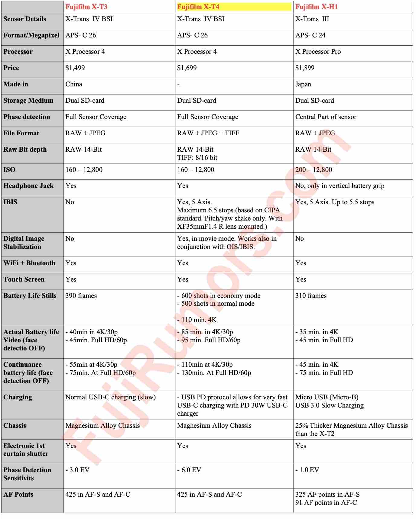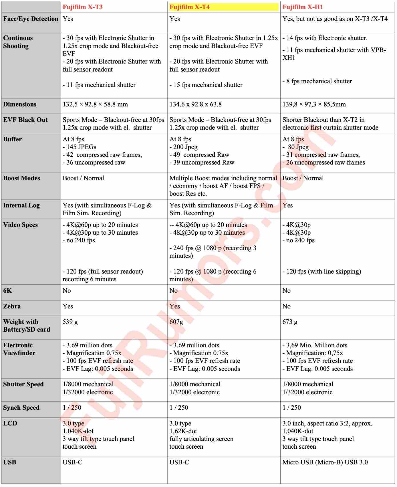 Fujifilm će 25/26 februara predstaviti svoj vrhunski profesionalni fotoaparat X T-4. Nokishita i Fuji Rumors su izbacili tehničke specifikacije ovog novog modela. Ovdje možete uporediti specifikacije Fujifilm XT 4 sa zadnja dva profesionalna Fujifilm fotoaparata sa APS C senzorom koji spadaju u fotoaparate sa vrhunskim video perfomansama.